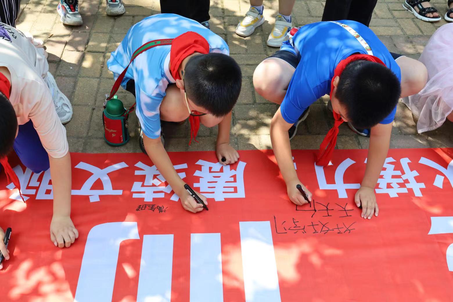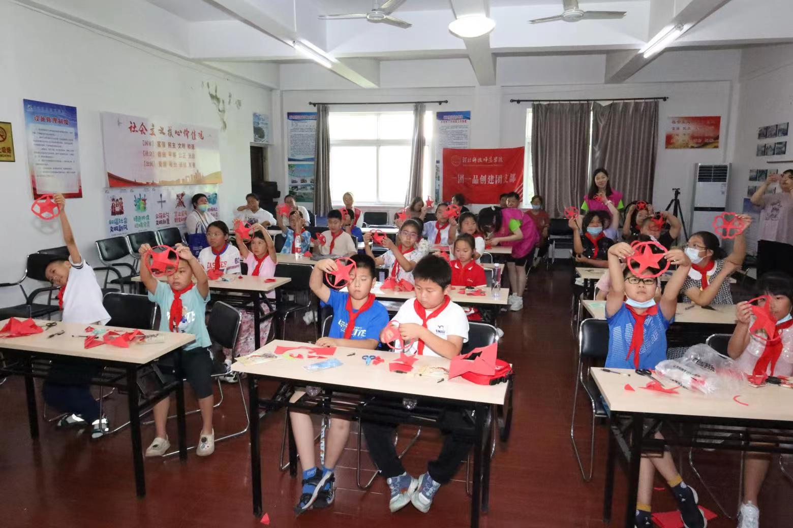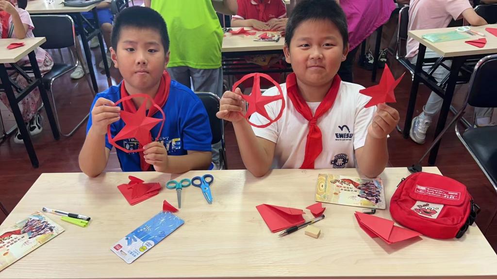 到达社会实践地点后,“星火接力,赓续文脉”社会实践团的成员们热情满怀,与社区中小员工及居民打成一片,开展了以影片《闪闪的红星》为主线的社会实践活动,旨在弘扬优秀传统文化,传递红色精神,厚植家国情怀,激发大家爱党爱国的热情,传承爱国基因。活动伊始,通过展播精选的视频,让同学们了解到英雄人物---潘冬子背后的感人故事,吸引了众多中小员工及居民的参与互动。随后,小分队成员组织了一场“闪闪红星传万家”的宣讲会。实践团的成员声情并茂地讲解了潘冬子的英勇事迹,让现场观众深受感动。《闪闪的红星》影片中潘冬子以“红星”为精神寄托,作为故事的线索贯穿剧情;队员们以教唱红色歌曲《闪闪的红星》和剪纸---“红星”的特殊形式,来表达中小员工对党的忠心与热爱。宣讲会现场,同学们认真聆听,积极互动,纷纷表示要从自身做起,做好红色基因的传承人;之后,同学们在“为中华之崛起而读书”条幅上签名,写下了自己的美好心愿。
