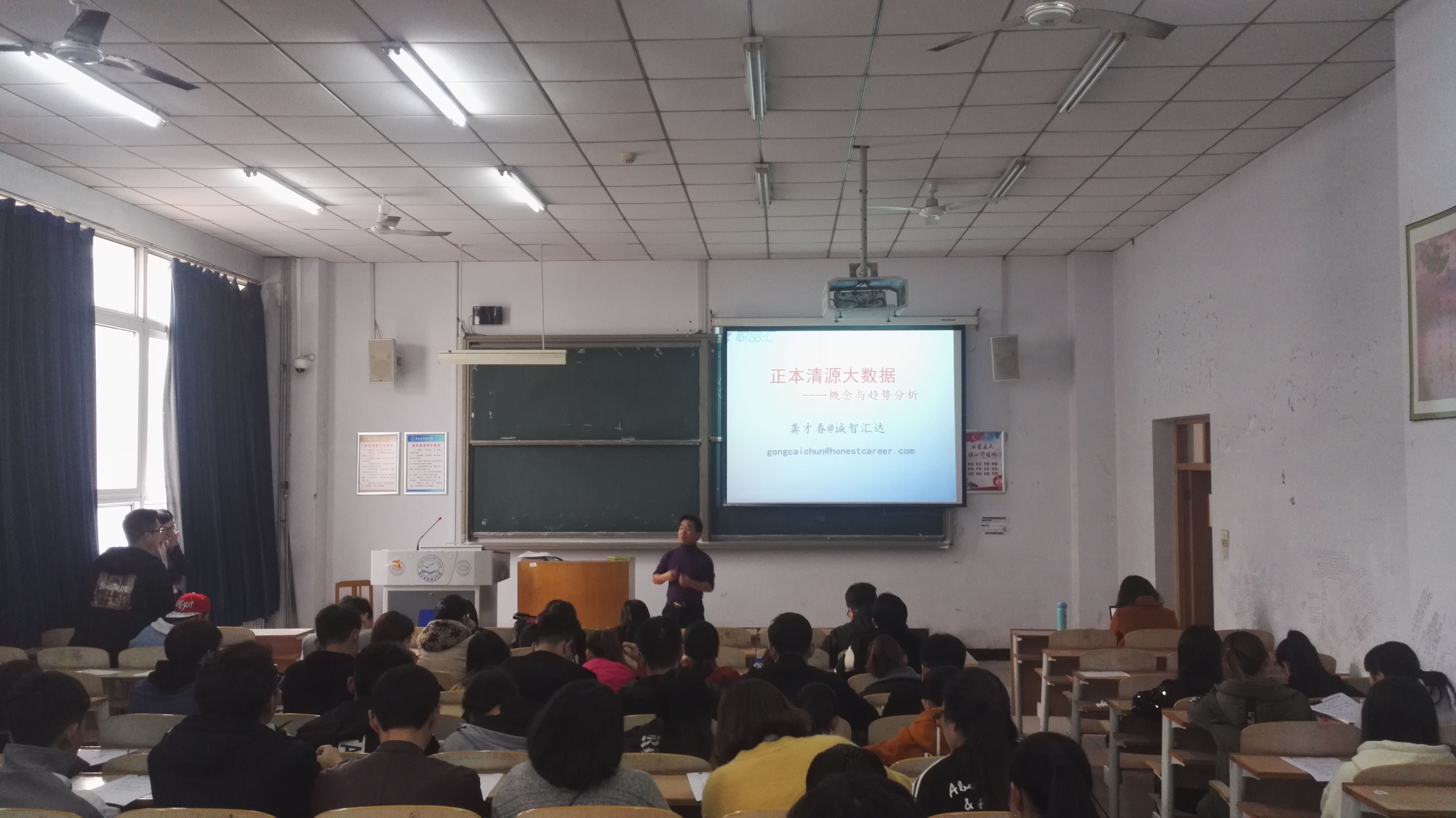 2017年11月2日下午2点,Playace平台官网入口邀请诚智汇达创始人龚才春博士在逸夫楼A107做题为《正本清源大数据-概念与趋势分析》的学术报告。公司2015级计算机科技专业、物联网工程专业员工及公司老师参加了报告会。