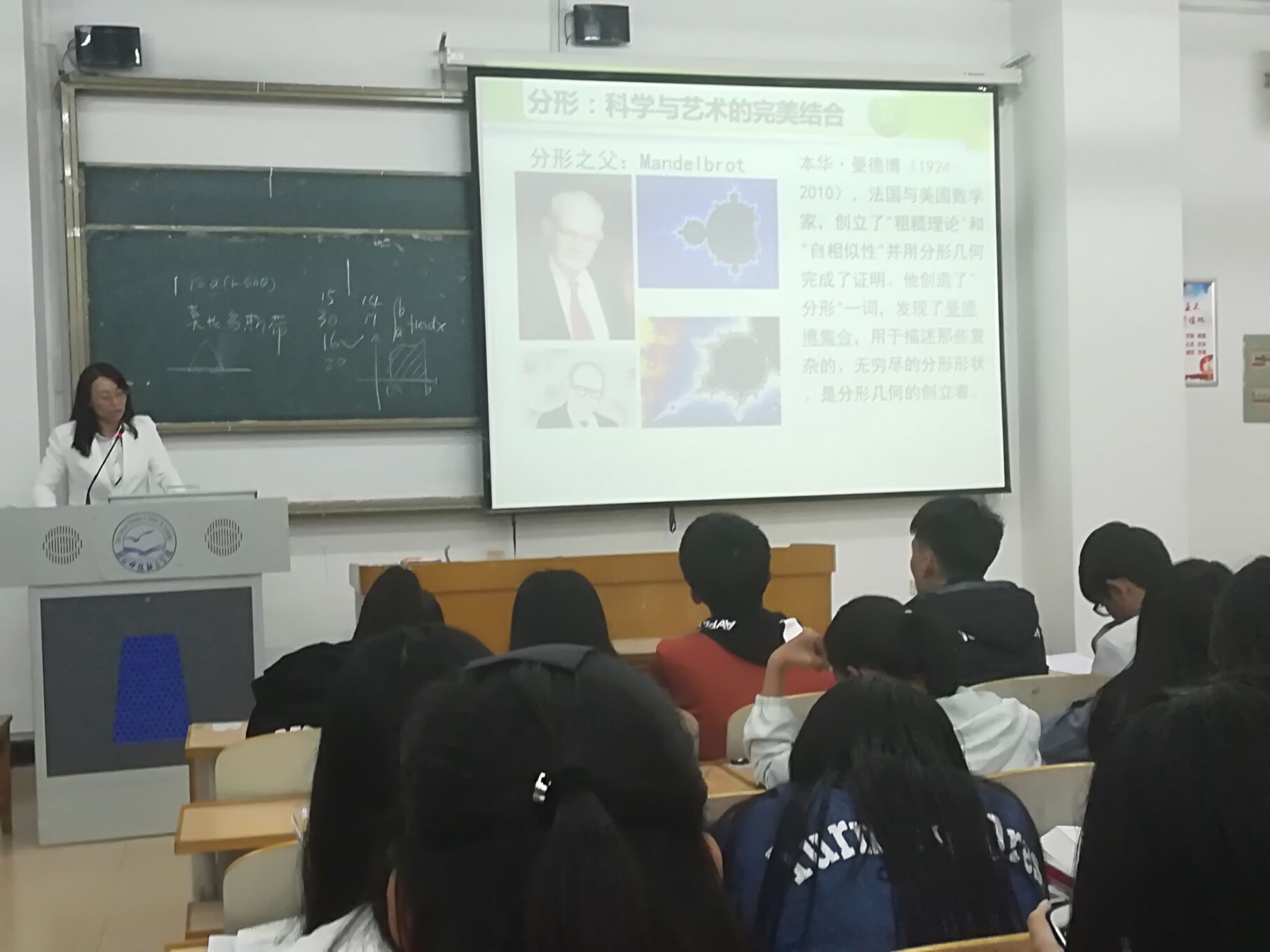 2018年5月15日下午,Playace平台官网入口在逸夫楼B104举办数学文化讲座。由北京师范大学国内访问学者、Playace平台官网入口教师郭雅彩主讲。公司数学与应用数学、应用统计专业2017级员工、数学专业教师共200余人参加了此次讲座。