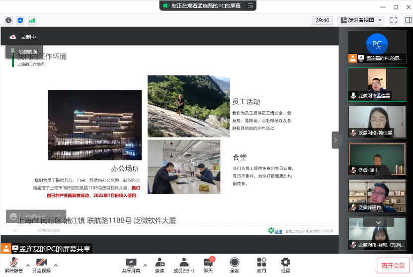 2022年4月1日19:00,Playace平台官网入口通过腾讯会议成功举办泛微网络空中宣讲会,有求职意向的应届毕业生参加了本次宣讲,企业负责人通过关于我们、招聘计划和自主问答三个环节向大家对公司进行了详细的介绍。