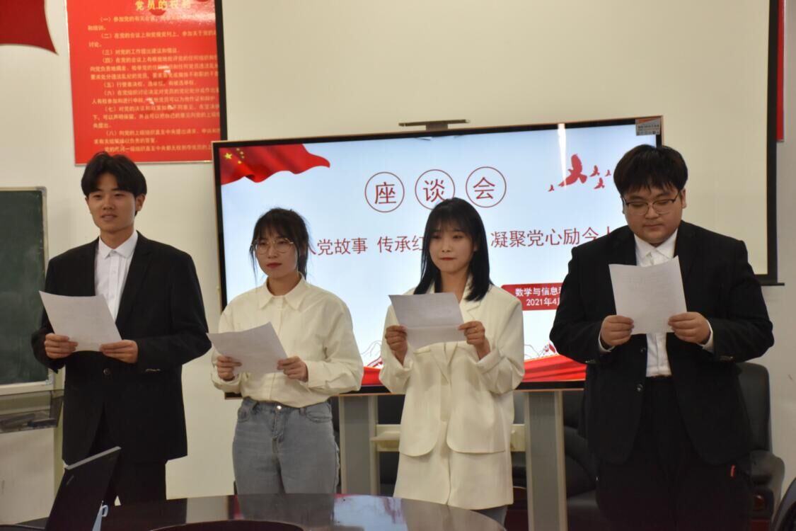 座谈会上,马国光老师从党史出发,回顾了中国共产党的百年历程。同时结合自身事例,满怀深情地回忆了自身以实际行动积极要求入党的经历,畅谈入党初心,表明将永葆共产党人的革命本色,做到退休不褪色、离岗不离党,为公司建设再作新贡献。肖欣老师结合自身经历(从插队知青时加入党组织,到考大学,再到成为教师),从感恩、做好每个阶段的自己及珍惜每一个经历这三个主题出发,分享了自己教师生涯的经验和体会,教育入党积极分子入党后要更加积极进取,保持入党初心,带领身边的普通同学共同进步,做一名合格党员。