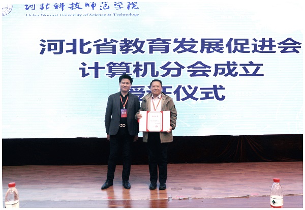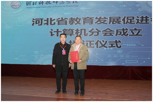 会上,张书华副会长授权成立河北省教育发展促进会计算机分会,副董事长刘荣昌教授为赵立强教授颁发计算机分会会长证书,会长赵立强教授为定州市职业技术教育中心、迁安市职业技术教育中心等来自省内11个地区的12所职教中心授权为分会副会长单位。计算机分会成立职业教育计算机虚拟教研室。