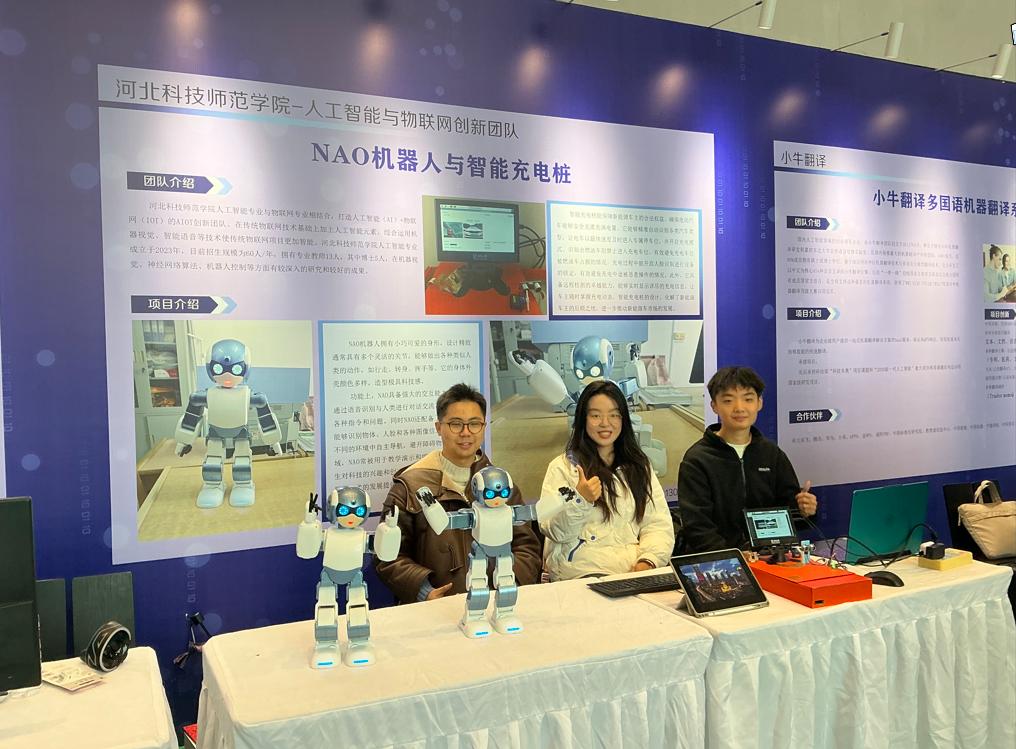 除了智能充电桩项目外,团队还展示了可编程的NAO机器人。NAO机器人凭借其可爱的外观和灵活的动作和强大的编程功能,深受参展观众的喜爱。在展会现场,NAO机器人展示了其灵活的舞蹈动作和智能交互功能,引得小朋友们争相上前互动体验。