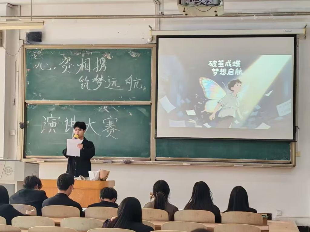“心资相携,筑梦远航”励志演讲比赛别出心裁地将心理健康与资助工作紧密结合,围绕“破茧成蝶,梦想启航”的主题,同学们深情分享在经济困境中坚守梦想、克服心理障碍的感人故事。