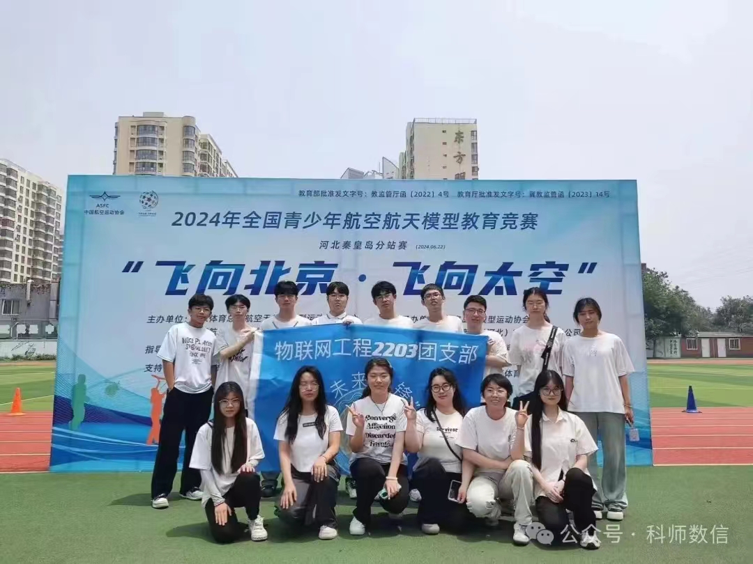 2024年6月22日,海联创新基地物联网工程2203各位志愿者赴秦皇岛市明珠公司助力“飞向北京·飞向太空”全国青少年航空航天模型教育竞赛暨无人机大赛,并进行学习交流。