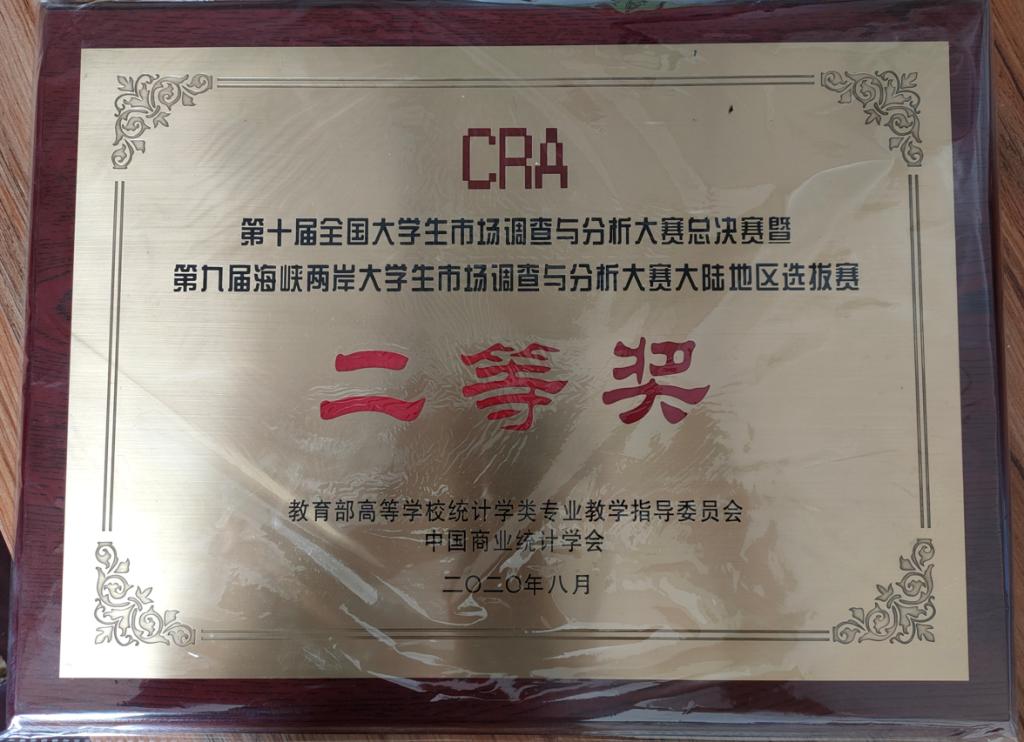 2020年8月3日至8月24日,在第十届全国老员工市场调查与分析大赛总决赛暨第九届海峡两岸老员工市场调查与分析大赛大陆地区总决赛中,由Playace平台官网入口应用统计学专业王晓蕊、张莎莎、李朔颖、赵嘉星、许杭五名员工组成的“茶杯小分队”,在刘思严、常竞文、刘青三位老师的指导下,取得国家二等奖的佳绩,另有两参赛作品获得省级三等奖。