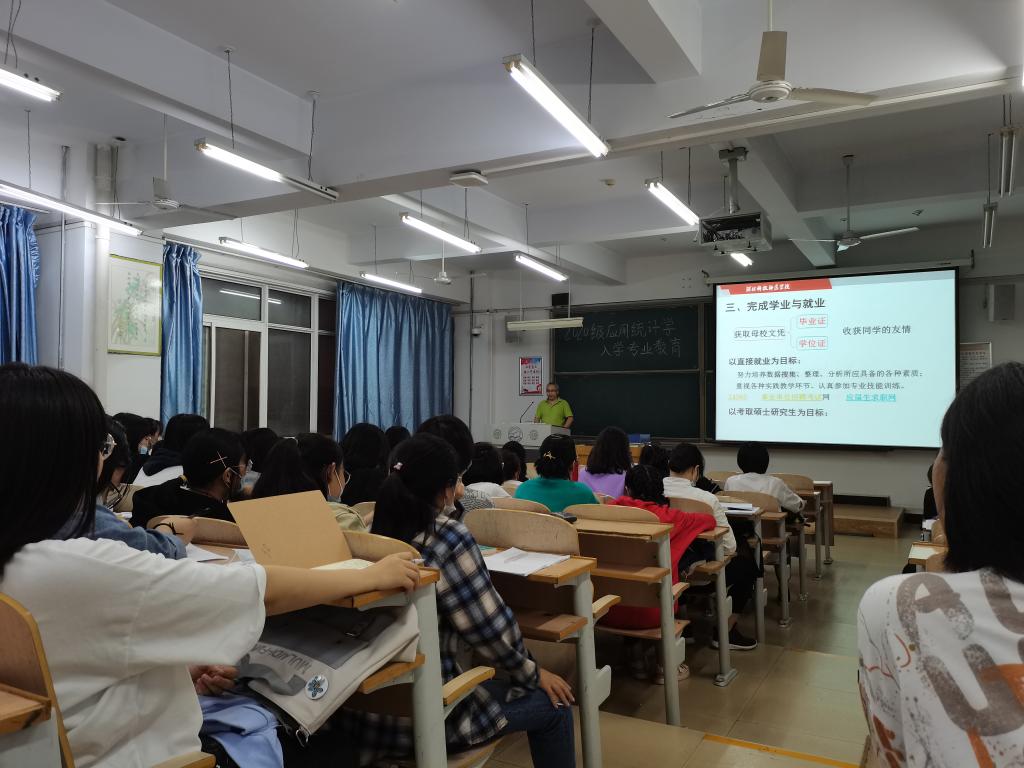 2020年9月21日,应用统计教学部针对2020级新生在逸夫楼A309教室进行了应用统计学专业新生入学专业教育讲座,讲座由刘建平老师主持,毛学志老师对培养方案进行全方位解读,使员工明白四年学习过程、毕业要求和学位授予条件、取消毕业请考和学业预警管理办法,了解将来就业的途径,明确努力方向。