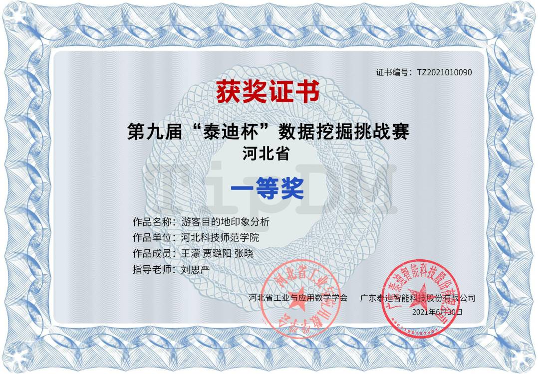 近日,第九届“泰迪杯”数据挖掘挑战赛河北省省级奖项揭晓,公司应用统计学专业员工获得一等奖1项、二等奖2项、三等奖2项的好成绩。